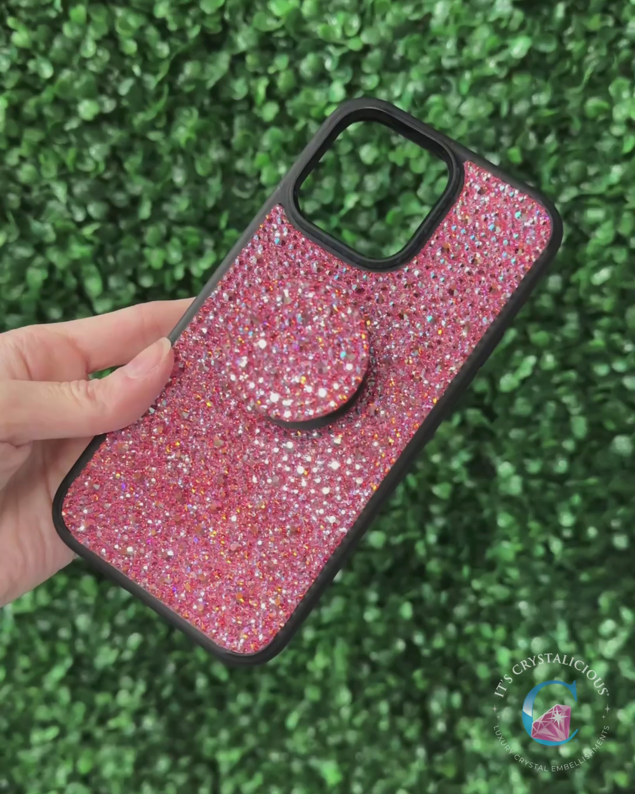 Bumper phone cover with multi crystal grip hand embellished with Preciosa® rose AB crystals for a vibrant, multi dimensional finish. A statement piece that protects your phone with premium craftsmanship and enhanced grip.