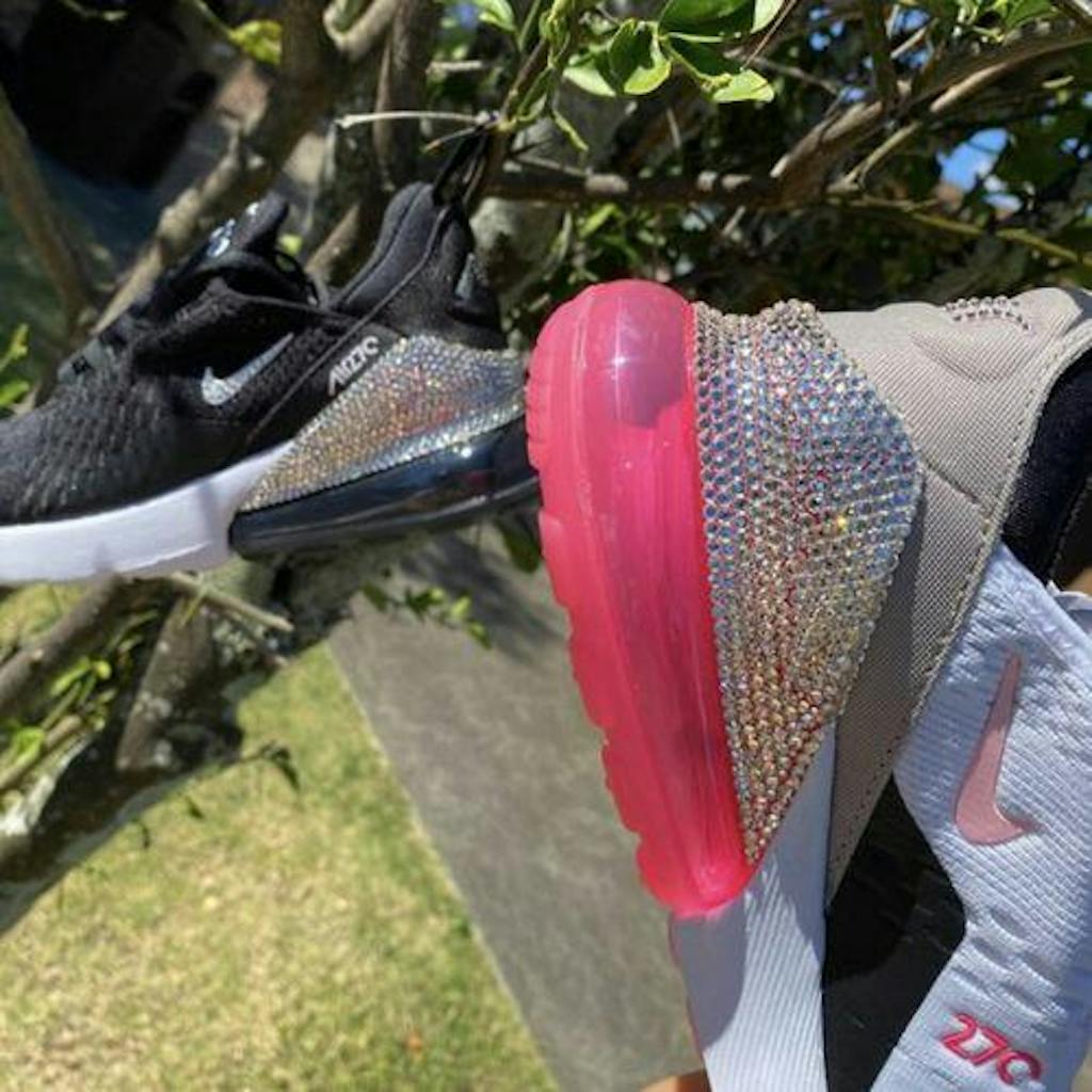 The Nike Air Max 270 in Black/White, hand embellished with Preciosa® crystals for a clean, luminous finish. A statement piece that elevates any casual look with premium craftsmanship.