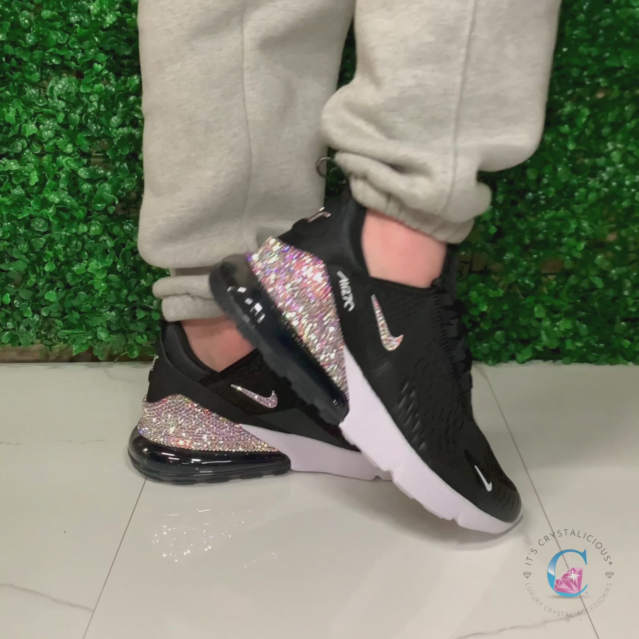 The Nike Air Max 270 in Black/White, hand embellished with Preciosa® crystal AB stones for a luminous, multi dimensional finish. A statement piece that elevates any casual look with premium craftsmanship.
