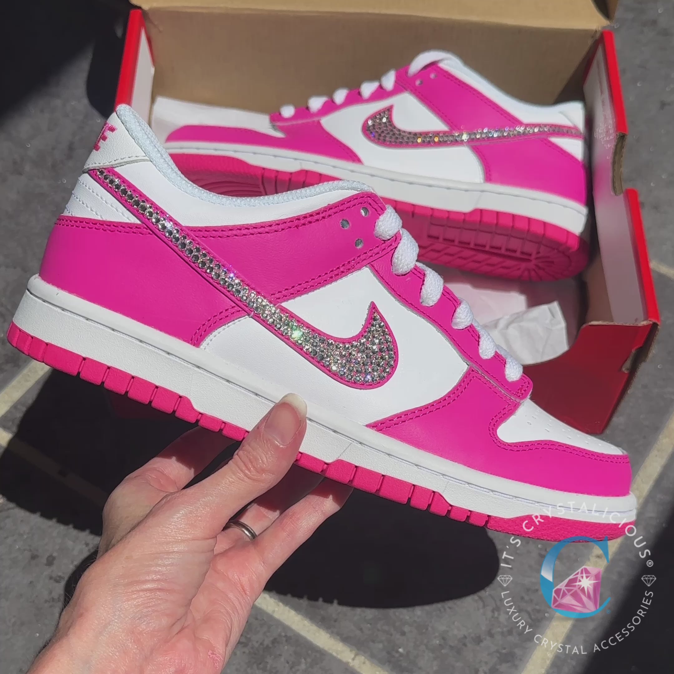 The Nike Dunk Low in Laser Fuchsia, hand embellished with Preciosa® crystals for a vibrant, luminous finish. A statement piece that elevates any casual look with premium craftsmanship.
