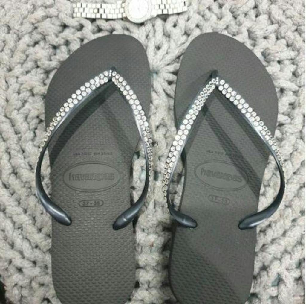 Black Thin Strap Havaianas/Crystal - 2 Rows *
