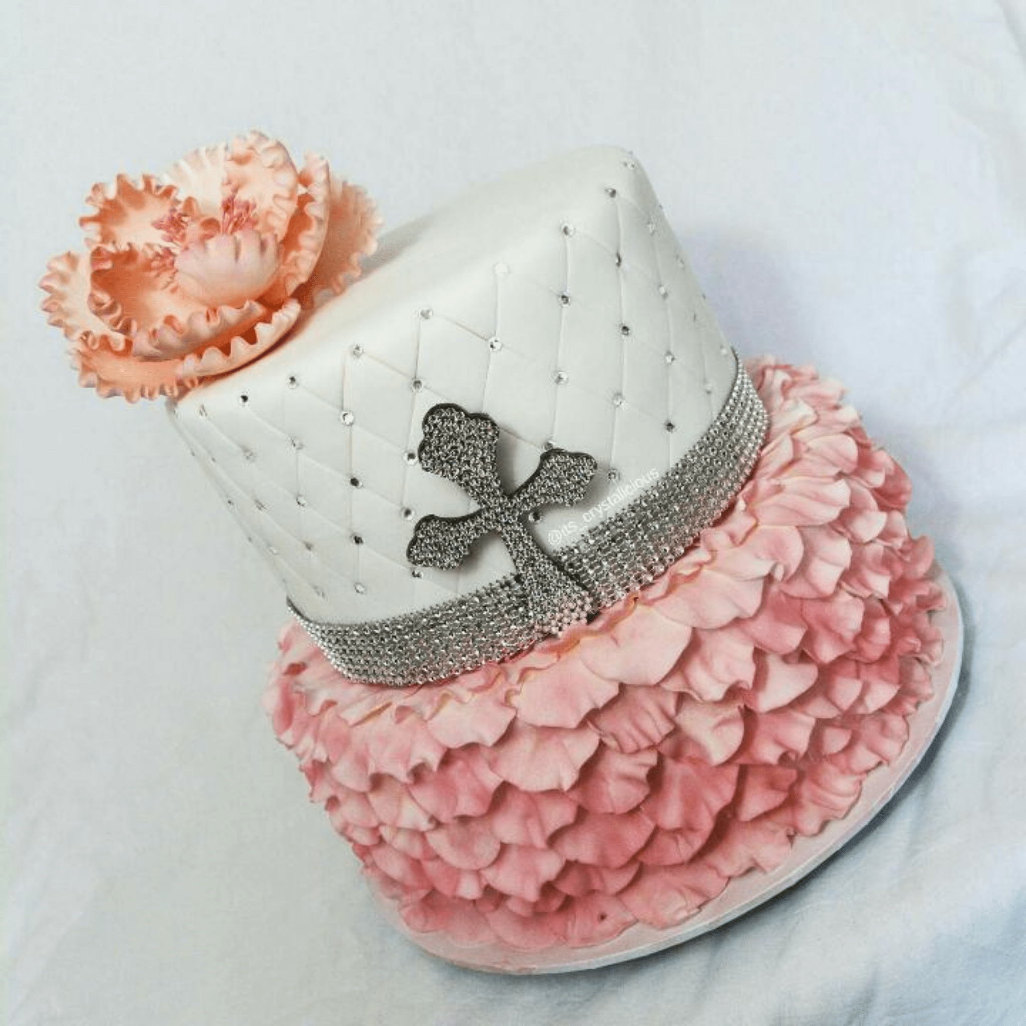 Curved cross design perfect for cakes. Customizable crystal colours. Food-safe materials.