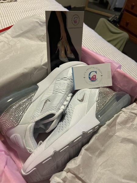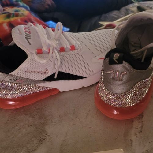 I asked her if she could chamge the color on the back that was tan to another color and she did it. There are no words how happy l am with these nike 270s..she also included extra crystals incase one falls off…..thank you so much I absolutely love the way they came out!